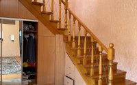 1 этаж:зал 41кв.м., кухня 24кв.м., холл 34кв.м., санузел. 2 этаж: 4 комнаты. Также имеется гараж 46кв.м., летняя кухня 40кв.м., есть разные насаждения, огород.