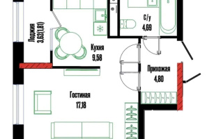 38.4 м² площадь