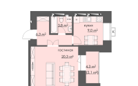 -Общая площадь 44.4м²