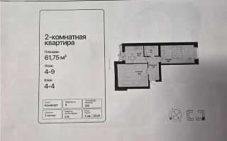 Продам 2-комнатную квартиру в перспективном районе: кирпичный дом от надежного застройщика «Свой дом», сдача — 3 квартал 2026 года (часто раньше срока), возможна ипотека, 70% оплаты — до ввода в эксплуатацию.