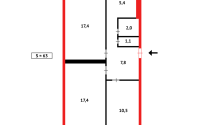 Общая площадь: 62,7 кв.м, кухня 6 кв.м.