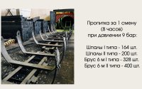 Производительность в смену 8 часов: шпалы деревянные I типа - 164 шт.; шпалы деревянные II типа - 200 шт.