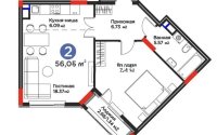 Продажа 2-комнатной квартиры, 56 м²