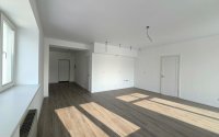 Кухня-студия с большой гостиной, спальня изолированная, есть большая гардеробная с окнами, 10 кв.м., можно использовать под детскую комнату, два санузла, панорамные окна смотрят во двор, 2 балкона открытые.