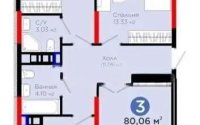 80 м², кухня – 14 м²