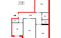 Общая площадь: 70,5 кв.м. Кухня: 8 кв.м.