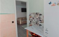 По всей квартире качественный линолеум, в кухне и в ванной комнате новый кафель