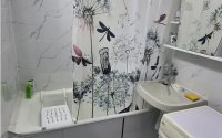 В квартире раздельный санузел и большая лоджия. В пользовании имеется небольшой ухоженный участок. Под лоджией организовано место для хранения инструментов и инвентаря. В подвале дополнительно имеется кладовое помещение.