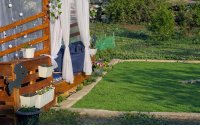 -Беседка, качелька, газон для приятного времяпровождения на свежем воздухе, плодородная земля для выращивания культур