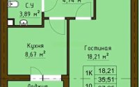 Полноценная 1-комнатная квартира с отдельной кухней.