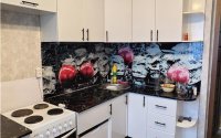 В квартире косметический ремонт, окна пластик, лоджия пластик, полы линолеум, потолки "под яйцо", санузел раздельный выложен кафельной плиткой, трубы пластик, счетчики воды.