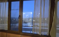 Установлены пластиковые окна, балкон застеклён,(пластик).