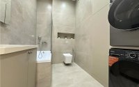 Внутри квартира просторная, с высокими потолками, современным ремонтом из качественных материалов. Есть мастер-спальня с гардеробной и собственным санузлом, вся сантехника скрытого монтажа (Grohe и Gappo), а также встроенная техника.