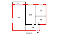 Общая площадь 44 кв.м., кухня 6 кв.м.