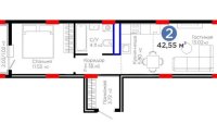 Продажа 2-комнатной квартиры, 42.78 м² в Астане