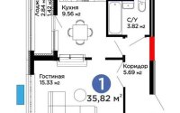Продажа 1-комнатной квартиры, 35.82 м²
