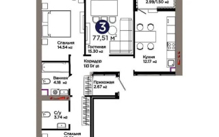 Продажа 3-комнатной квартиры, 84.71 м²