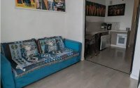 Не угловая квартира с кухней-студией, счётчики установлены.