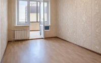 Удобная планировка, просторная комната, большие окна и выход на застеклённый балкон. На полу ламинат, аккуратные обои.