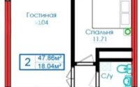 Продажа 2-комнатной квартиры, 47.86 м² в Астане