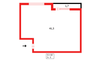 • Площадь: 43 кв. м. — достаточно пространства для комфортной жизни.