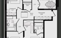 Есть дизайн-проект, по которому выполнена качественная электропроводка, стены выровнены по маякам, установлена сантехника. Квартира полностью готова к чистовой отделке.