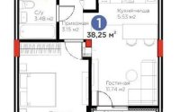 38.25 м², кухня – 5.53 м²