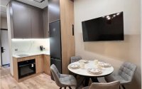 • Полноценная кухня-студия из искусственного камня с техникой: варочная панель, духовка, вытяжка, холодильник, микроволновка, электрочайник с Wi-Fi