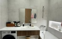 Кухня-студия со встроенным гарнитуром, новая мебель и техника. Сантехника, есть гардеробная и кладовка. Витражные окна, потолки 3 м, двери скрытого монтажа 2,5 м, установлен кондиционер.