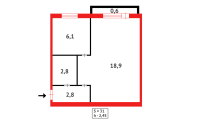 • Общая площадь квартиры-31,2кв.м: Кухня площадью-6,1кв.м