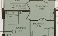 Продажа 2-комнатной квартиры, 58.74 м²
