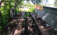 Территория огорожена забором.