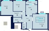 3-комнатная квартира. Спальни 23 и 17 м², гостиная 20 м², кухня 15 м², гардероб 23 м², лоджия 4,3 м².