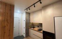 Большое количество мест хранения в корпусной мебели, теплый пол на лоджии, кондиционер, зонирование территории, много сценариев освещения.