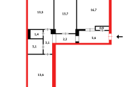 Общая площадь 75кв.м/кухня 13,5кв.м.