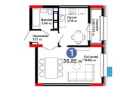 Продажа 1-комнатной квартиры, 36.85 м² в Астане
