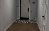 В кухне встроенный холодильник, встроенная посудомойка, гарнитур из МДФ.