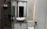 Столешницы под чашами в санузлах также из искусственного камня.