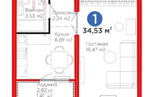 Продаётся 1-комнатная квартира в развивающемся районе — сдача осенью.