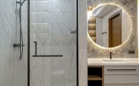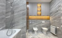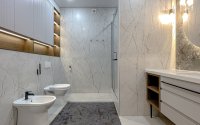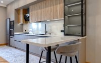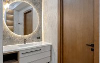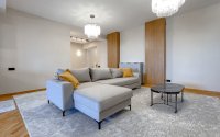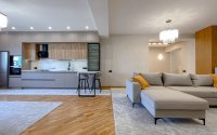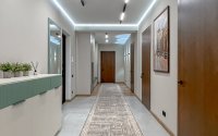 Использованы только премиальные материалы и техника: заказные двери из натурального шпона Беларуси высотой 2, 5 метра, элегантный паркет, сантехника Villeroy & Boch, встроенная техника Miele, полный комплект мягкой мебели, освещения, текстиля и декора
