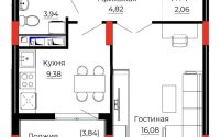 38.29 м², кухня – 9.38 м²