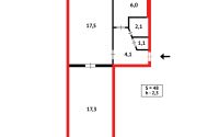 - Общая площадь 48 кв. м, кухня 6 кв. м.