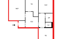- Общая площадь 68 кв. м, кухня 8,5 кв. м.