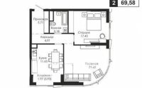 Продажа 2-комнатной квартиры, 69.58 м²
