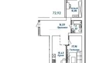72.92 м², кухня – 15.43 м²