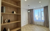 Ремонт сделан из качественных материалов: кварцвинил, немецкие обои, финская краска, высокие двери, продуманное освещение.