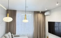 Евро-3. Квартира со свежим ремонтом, делали для себя. Раздельные комнаты, кухня-студия, санузел. Встроенная мебель и техника остаются (стиралка-сушка, микроволновка, посудомойка, плита, холодильник, ТВ, кондиционеры). Тёплые полы в ванной и коридоре. Смарт-замок с отпечатком, камеры на площадке. Ремонт по дизайн-проекту.
