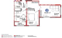 59.9 м², кухня – 9.9 м²