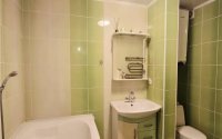 - Санузел в кафеле Установлен кухонный гарнитур