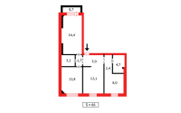 Общая площадь — 65 кв.м, кухня — 8 кв.м.